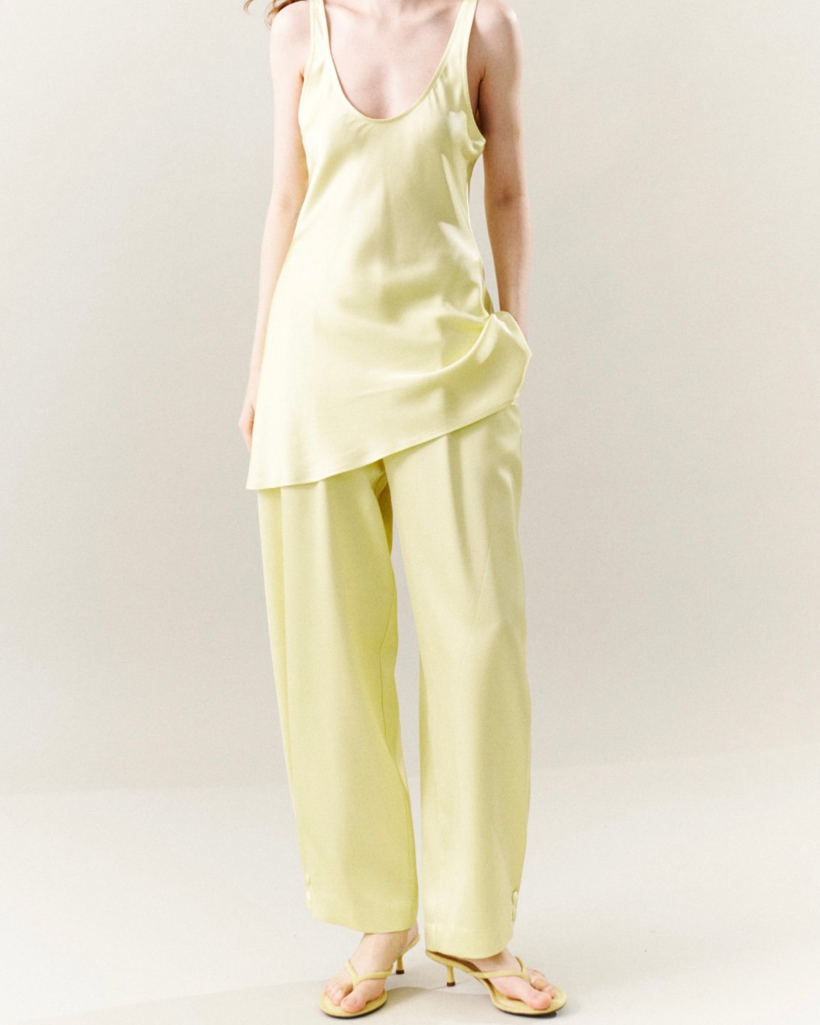Tank top in 100% viscose satin fabric.Wide rounded neckline. Wide shoulder straps.Regular fit, available in size S/M, M/L.